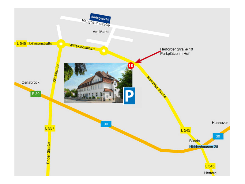 Abke & Hoffmann-Gallhoff | Herforder Str. 18 | 32257 Bünde Telefon: 05223 - 2200 / 522 322 Fax: 05223 - 13 590 Sie finden kostenfreie Parkplätze hinter dem Kanzleigebäude